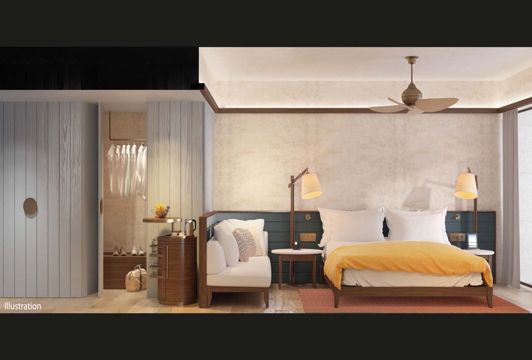 1 спальная комната – 1 двуспальная кровать · диван · VRF кондиционер · покрытие пола - ламинат · мини бар · набор для чая и кофе · сейф · LCD телевизор · спутниковое телевидение · музыкальный канал · телефон · 1 отдельный туалет · 1 отдельный душ · 1 отдельная гардеробная · халат · тапочки · фен · зеркало для макияжа · балкон