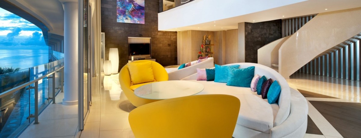 Площадь · 532 квадратных метров • Двухуровневый люкс • Главная спальня на втором этаже • Гостевая спальня и гостиная на 1-м этаже • Экспансивный балкон с видом на океан на каждом этаже • Балкон с шезлонгами • Частный курортный массажный кабинет • Все спальни с 40-дюймовым телевизором с плоским экраном • Мягкое пуховое одеяло • Спальный диван-кровать в гостевой спальне • 2 ванные комнаты • Тропический душ • Гостиная с 55-дюймовым телевизором с плоским экраном • Система объемного звучания BOSE® • Док-станция для iPod • Столовая на 8 человек • Кухня • Wi-Fi • Спа / Фитнес • Гостиная • Кондиционер • Сейф в номере • Мини-бар • Телефон